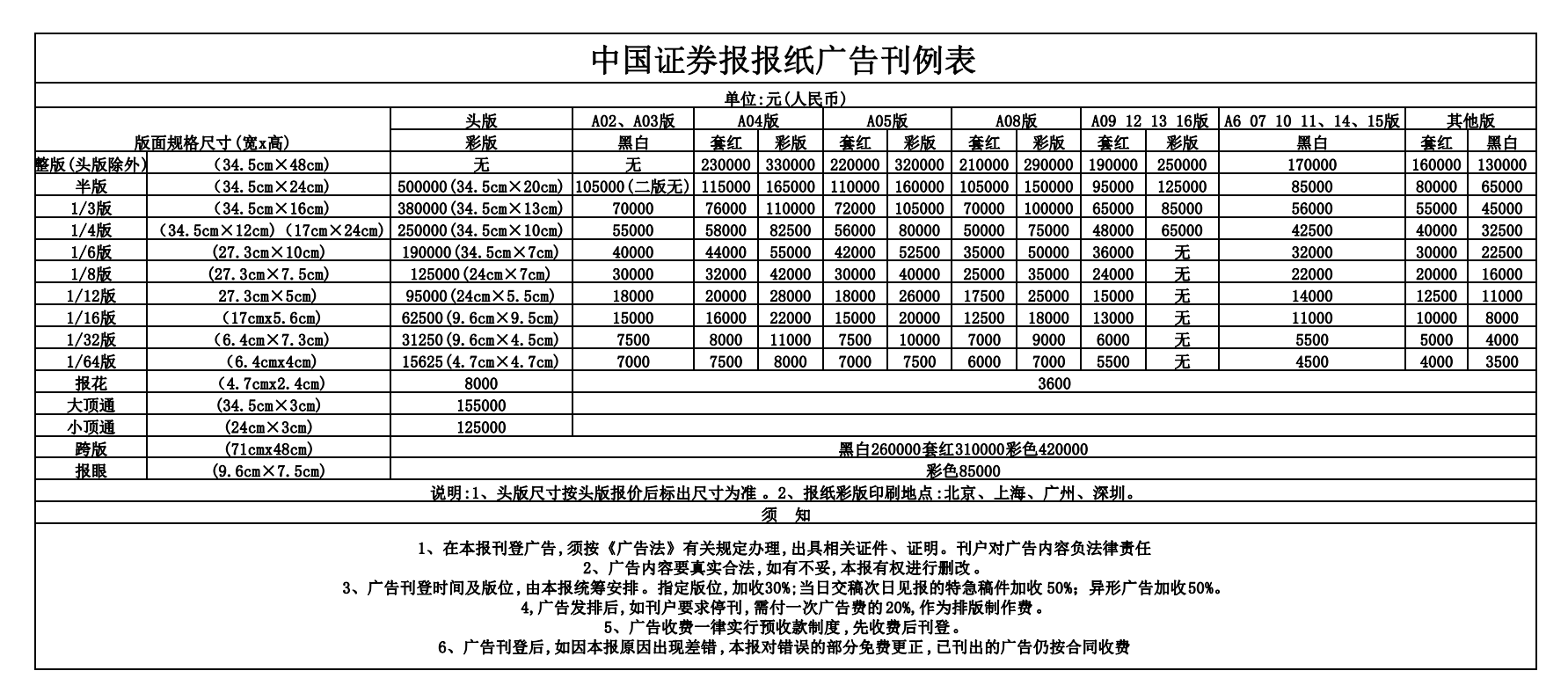 點擊下載中國證券報廣告價目表
