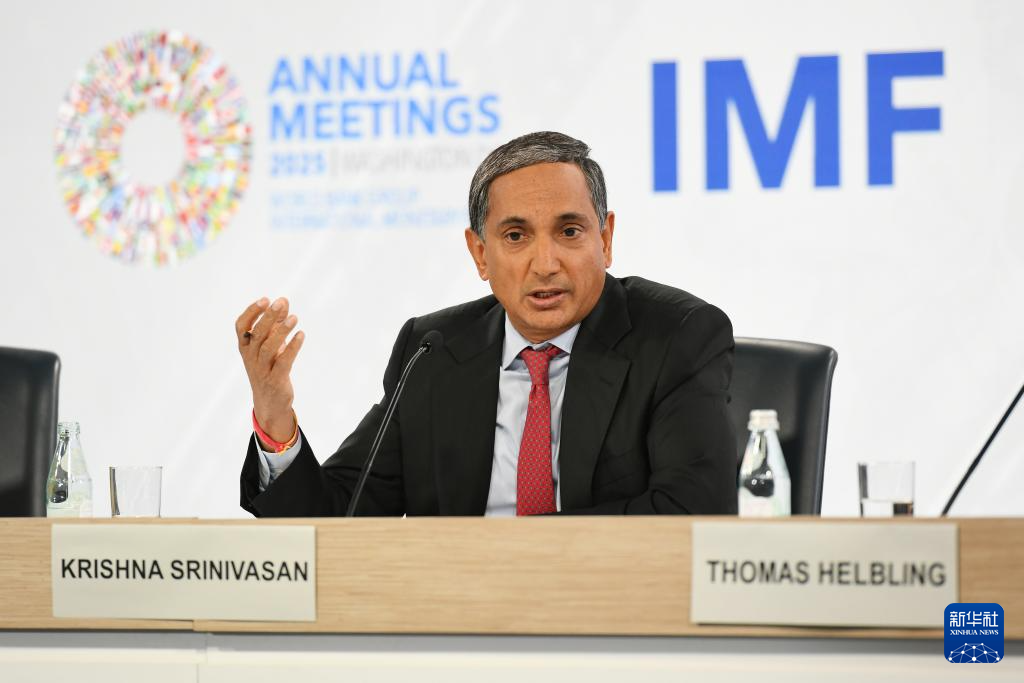 ??10月16日,在美國(guó)華盛頓,國(guó)際貨幣基金組織(IMF)亞太部主任斯里尼瓦桑在新聞發(fā)布會(huì)上講話。新華社記者 李睿 攝