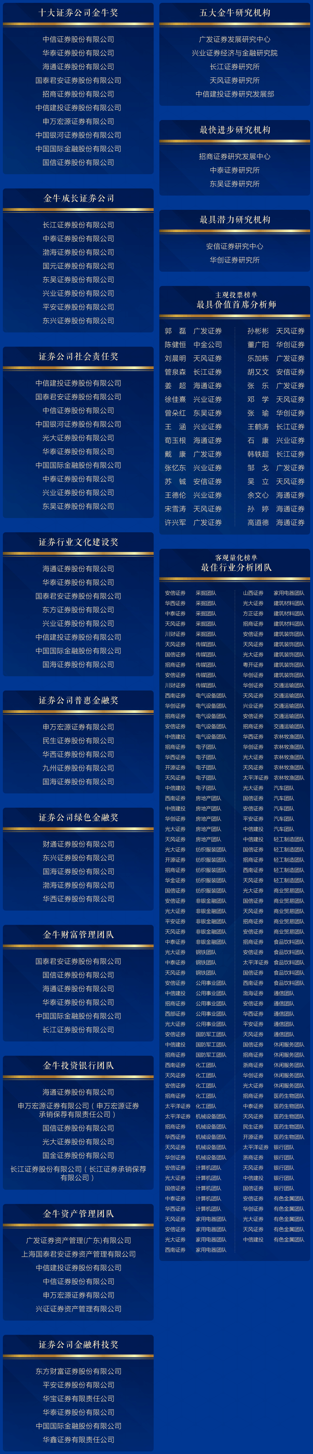 - 2020證券業(yè)分析師金牛獎(jiǎng)揭曉 廣發(fā)證券六名分析師斬獲大獎(jiǎng)