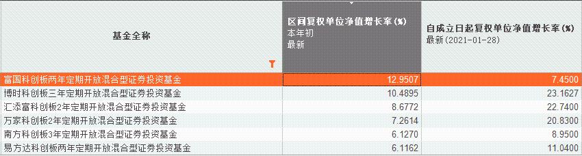 今年以來(lái)科創(chuàng)板定開(kāi)基金凈值漲幅情況
