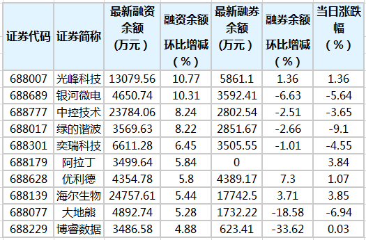 9只科創(chuàng)板股融資余額增幅超5%