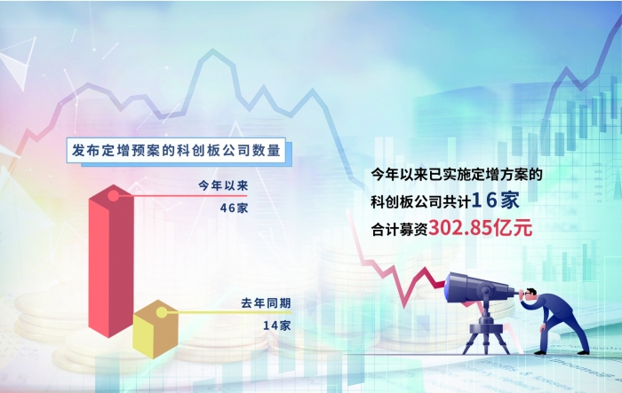 一組對比數(shù)據(jù),凸顯當(dāng)前科創(chuàng)板再融資之熱。據(jù)上海證券報記者不完全統(tǒng)計,今年以來,共有46家科創(chuàng)板公司發(fā)布定增預(yù)案,而去年同期這一數(shù)字僅為14家;年內(nèi)已實施定增方案的科創(chuàng)板公司共計16家,合計募資302.85億元。