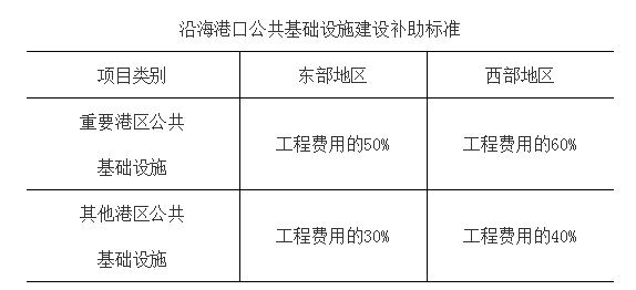 通知指出,車輛購置稅收入補(bǔ)助地方資金支出范圍中增加“沿海港口公共基礎(chǔ)設(shè)施建設(shè)支出”。沿海港口公共基礎(chǔ)設(shè)施建設(shè)支出,主要指用于沿海港口進(jìn)出港航道、防波堤、錨地等基礎(chǔ)設(shè)施建設(shè)支出。該項(xiàng)支出按項(xiàng)目法分配。其中:對于重要港區(qū)公共基礎(chǔ)設(shè)施,東部地區(qū)、西部地區(qū)分別按工程費(fèi)用的50%、60%補(bǔ)助;對于其他港區(qū)公共基礎(chǔ)設(shè)施,東部地區(qū)、西部地區(qū)分別按工程費(fèi)用的30%、40%補(bǔ)助。