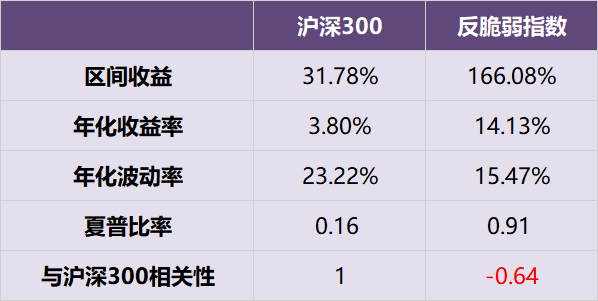 根據(jù)華鑫證券測算,2015年2月10日至2022年7月5日,“反脆弱指數(shù)”累積上漲166.08%,年化波動率15.47%,同時期滬深300指數(shù)累積上漲僅31.78%,年化波動率23.22%。更為關(guān)鍵的是,“反脆弱指數(shù)”與滬深300指數(shù)的相關(guān)系數(shù)為-0.64,更能應(yīng)對復(fù)雜多變的市場環(huán)境。