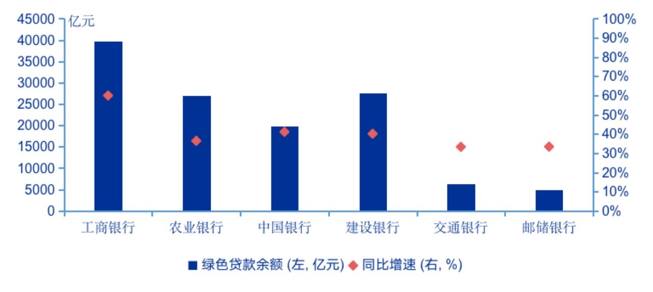 圖6:2022年六大國(guó)有行綠色信貸規(guī)模及增速