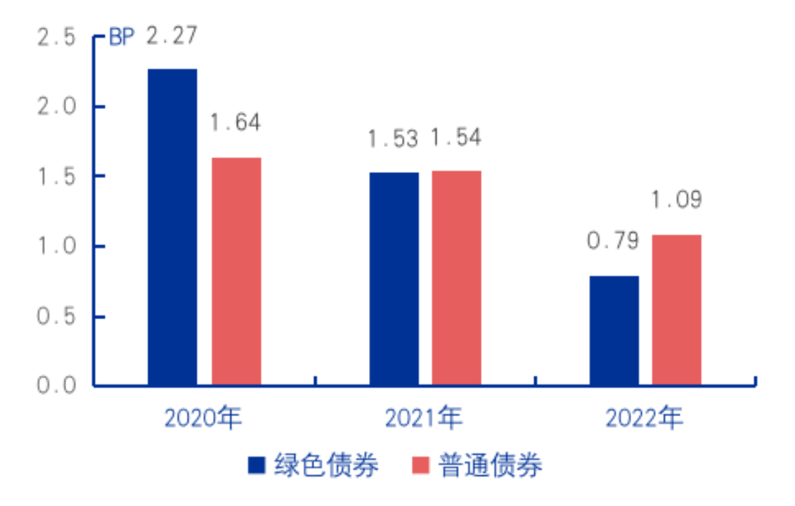 綠色債券溢價(jià)逐步凸顯,投資者對(duì)綠色債券投資熱情提升。綠色債券相比于普通債券,具有明顯的正外部性和環(huán)境效益,投資者愿意以低于傳統(tǒng)債券的收益率接受綠色資產(chǎn)。綠色債券溢價(jià)可以由綠色債券信用利差與普通債券信用利差衡量,為獲得2020—2022年的綠色債券溢價(jià)情況,根據(jù)債券特性與發(fā)行人特性進(jìn)行傾向得分匹配,為綠色債券尋找其孿生債券進(jìn)行測(cè)算,測(cè)算發(fā)現(xiàn)2022年有-29BP的綠色溢價(jià),遠(yuǎn)大于2021年的-1BP,近三年來(lái)呈現(xiàn)出明顯的由正轉(zhuǎn)負(fù)的變化趨勢(shì),說(shuō)明投資者對(duì)綠色債券的認(rèn)可度不斷提升,實(shí)體企業(yè)能夠利用較低的融資成本獲取綠色發(fā)展資金。值得關(guān)注的是,歐美地區(qū)的金融綠色溢價(jià)正在消失,傳統(tǒng)金融產(chǎn)品和綠色金融產(chǎn)品的融資成本差異逐漸縮小,但我國(guó)金融綠色溢價(jià)短期內(nèi)不會(huì)消失,一方面,當(dāng)前與低碳發(fā)展相關(guān)的技術(shù)升級(jí)尚未進(jìn)入成熟期,實(shí)體綠色溢價(jià)在很長(zhǎng)一段時(shí)間內(nèi)難以消退,亟須通過(guò)金融綠色溢價(jià)彌補(bǔ)實(shí)體綠色溢價(jià),增強(qiáng)企業(yè)在綠色低碳發(fā)展投入的動(dòng)力;另一方面,綠色激勵(lì)政策仍處于“強(qiáng)引導(dǎo)”階段,綠色債券發(fā)行環(huán)節(jié)日趨規(guī)范,發(fā)行規(guī)模穩(wěn)步上升,投資者的綠色債券投資熱情為金融綠色溢價(jià)的存在提供支撐。隨著綠色低碳技術(shù)的穩(wěn)定應(yīng)用,金融綠色溢價(jià)有可能在實(shí)體綠色溢價(jià)降低的帶動(dòng)下消退。
