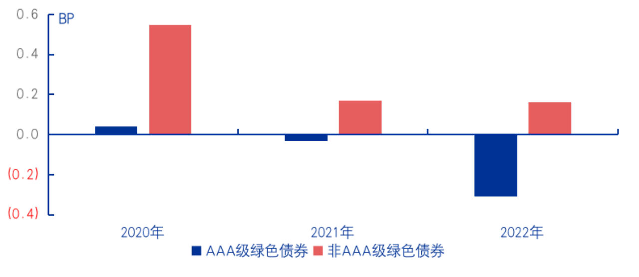 圖13:2020—2022年不同主體信用評(píng)級(jí)綠色債券溢價(jià)情況