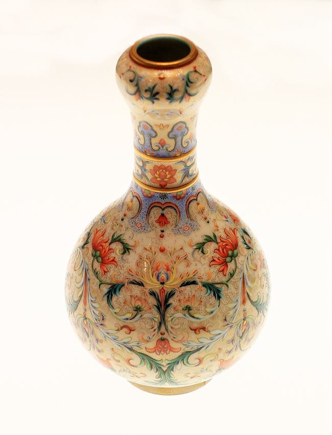 琺瑯彩纏枝花卉紋蒜頭瓶,清,乾隆,中國國家博物館。
