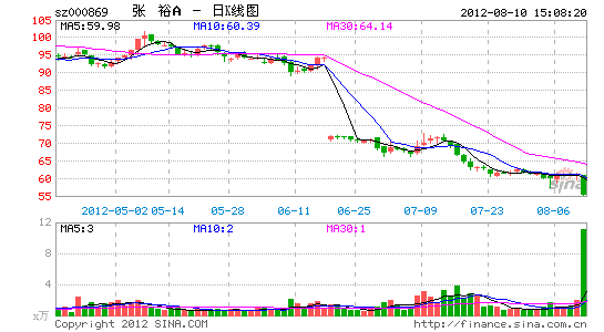 8月10日,張?jiān)(000869.SZ)開于60.8元,收于55.23元,當(dāng)日跌幅9.83%,盤中11點(diǎn)23分時(shí),更是恐慌性下探到55.18元,隨后午盤稍微回收,但仍然難改頹勢(shì),全日振幅9.39%,換手率2.45%成交金額6.28億元。