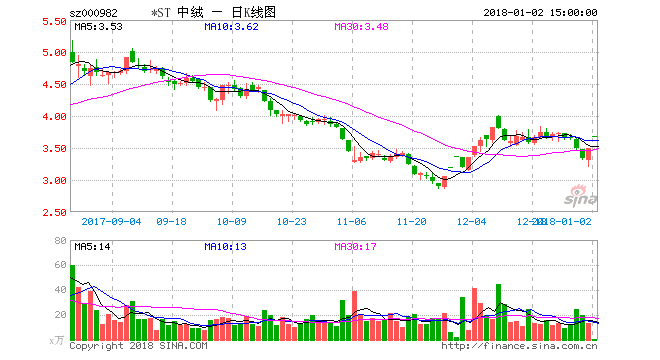 資料顯示,2015、2016年*ST中絨連續(xù)兩年分別虧損10.6億元和8.74億元,2017年被“披星戴帽”。