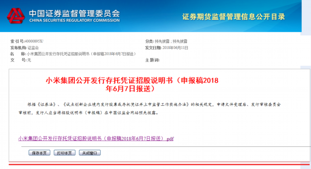 中國(guó)證券網(wǎng)訊 6月11日從證監(jiān)會(huì)網(wǎng)站獲悉,小米集團(tuán)在證監(jiān)會(huì)網(wǎng)站披露小米集團(tuán)公開(kāi)發(fā)行存托憑證招股說(shuō)明書(shū)(申報(bào)稿2018年6月7日?qǐng)?bào)送) 。
