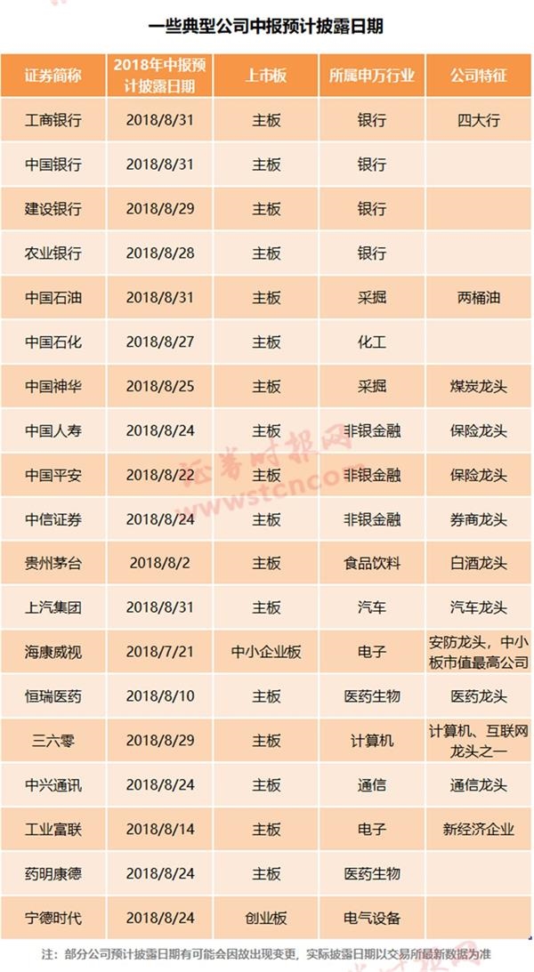 這些重點(diǎn)公司的中報(bào)披露時(shí)間要記住了