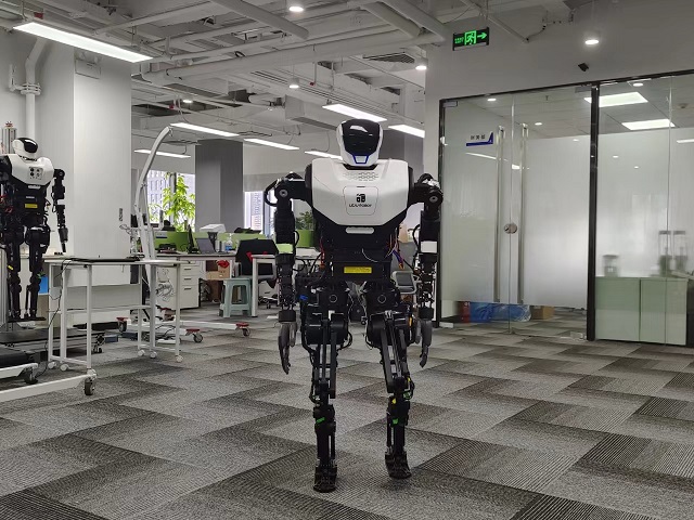 樂(lè)聚人形機(jī)器人夸父正在測(cè)試 本報(bào)記者 張興旺 攝