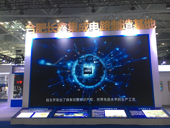 在2019世界制造業(yè)大會上,長鑫存儲內(nèi)存芯片自主制造項目宣布投產(chǎn),其與國際主流DRAM產(chǎn)品同步的10納米級第一代8Gb DDR4首度亮相,一期設計產(chǎn)能每月12萬片晶圓。圖為長鑫存儲展位。攝影/本報記者 吳科任