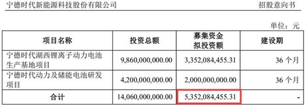 招股書(shū)顯示,寧德時(shí)代此次預(yù)期募資的金額約為53.52億元,將投向代湖西鋰離子動(dòng)力電池生產(chǎn)基地項(xiàng)目和代動(dòng)力及儲(chǔ)能電池研發(fā)項(xiàng)目。