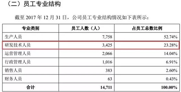 此外,截至2017年年末,寧德時(shí)代共擁有員工14711名,其中研發(fā)技術(shù)人員共3425名,占員工總數(shù)比例為23.28%。招股書(shū)中也提到,寧德時(shí)代高度重視人才的引進(jìn)和培養(yǎng),建立了涵蓋產(chǎn)品研發(fā)、工程設(shè)計(jì)、測(cè)試驗(yàn)證、制造等領(lǐng)域的強(qiáng)大研發(fā)團(tuán)隊(duì)。