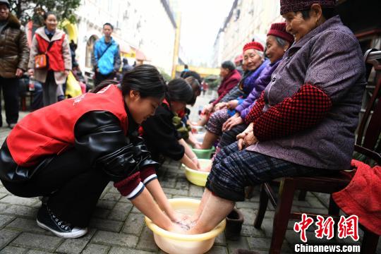資料圖:志愿者為老人們洗腳!£惓z