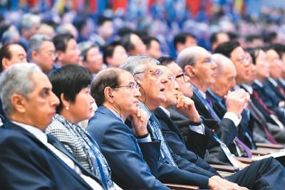 圖為參加第四屆世界互聯(lián)網(wǎng)大會(huì)的嘉賓在聽取大會(huì)發(fā)言。