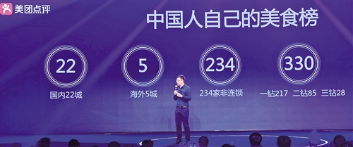 美團(tuán)點(diǎn)評(píng)高級(jí)副總裁張川為觀眾介紹黑珍珠餐廳指南的產(chǎn)生過程。