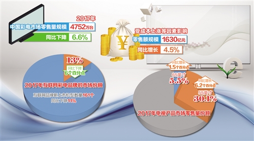 2017年,彩電銷(xiāo)售市場(chǎng)遭遇“滑鐵盧”,銷(xiāo)量同比下降6.6%。業(yè)內(nèi)專(zhuān)家認(rèn)為,在房地產(chǎn)市場(chǎng)調(diào)控、面板價(jià)格上漲的大背景下,電視整機(jī)企業(yè)利潤(rùn)空間被進(jìn)一步壓縮。下一步,只有積極進(jìn)行結(jié)構(gòu)調(diào)整,不斷研發(fā)新技術(shù),才能在市場(chǎng)競(jìng)爭(zhēng)中實(shí)現(xiàn)突破。