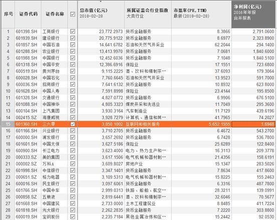 此外,三六零2016年的凈利潤為18.48億元,也遠低于同級別市值的公司。