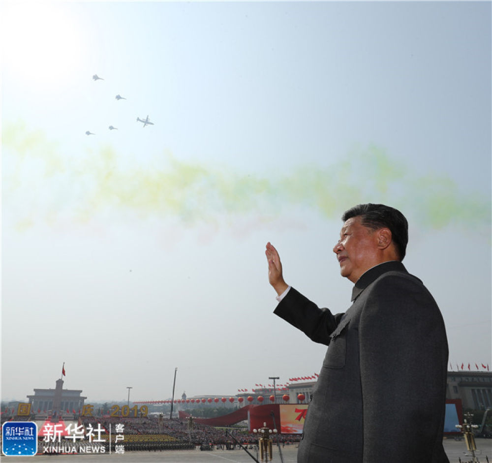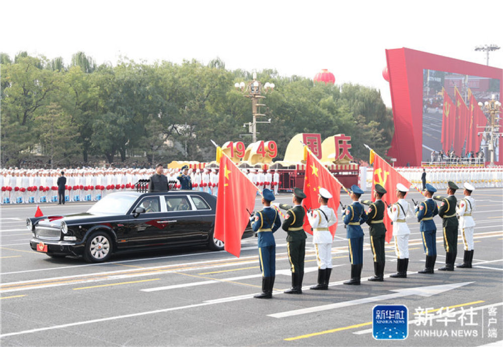 ↑10月1日,慶祝中華人民共和國成立70周年大會在北京天安門廣場隆重舉行。這是中共中央總書記、國家主席、中央軍委主席習(xí)近平檢閱受閱部隊(duì)。新華社記者 李濤 攝