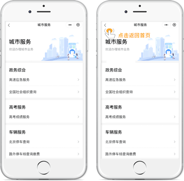 城市服務(wù)還會根據(jù)定位城市,為你智能化推薦當(dāng)?shù)氐膶嵱霉δ,如停車查詢、汽車售票、舉報中心等服務(wù),讓你的出行更省心。(如定位有誤可在首頁左上角進行切換。)