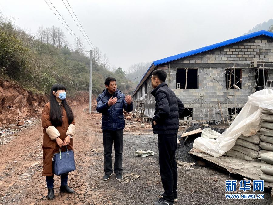 1月27日,駐麻溪口村幫扶工作隊隊長段吉廣(中)在村內協(xié)調生豬養(yǎng)殖場建設工作。新華社記者 柳王敏 攝
