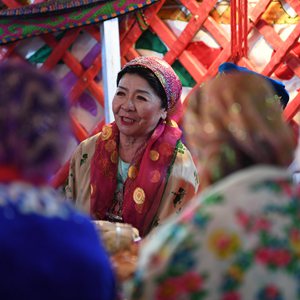 當(dāng)日,新疆塔城地區(qū)托里縣哈薩克民宿風(fēng)情自駕游基地的哈薩克氈房迎來民間社團(tuán)“小天鵝藝術(shù)團(tuán)”。團(tuán)員們平均年齡近70歲,來自不同民族,因為能歌善舞,熱愛公益,被當(dāng)?shù)厝朔Q為“愛心奶奶藝術(shù)團(tuán)”。她們相聚在此,用歌舞表達(dá)對新年的祝福和期待。