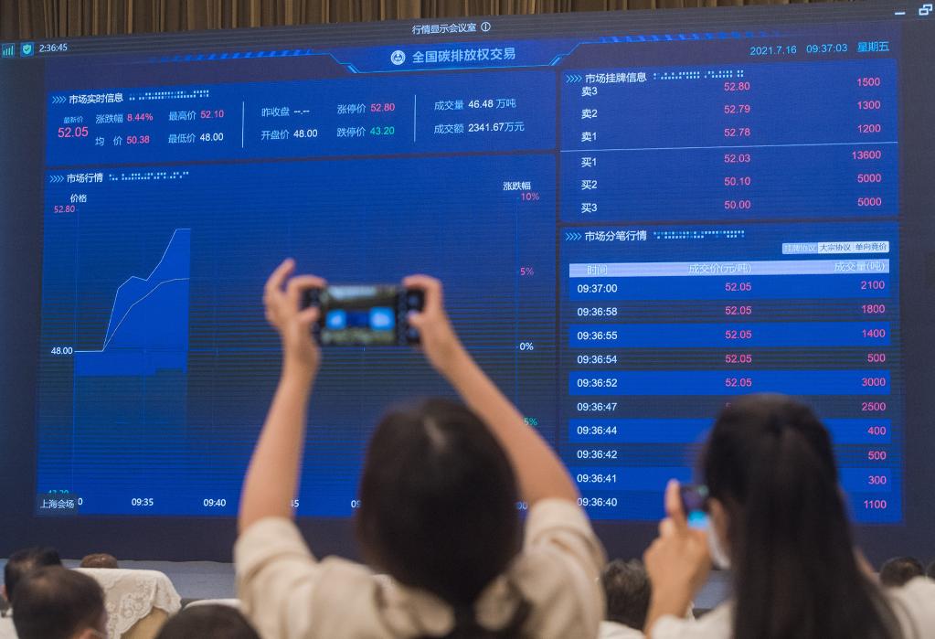 7月16日在武漢拍攝的全國(guó)碳排放權(quán)交易實(shí)時(shí)信息畫(huà)面。 新華社記者肖藝九 攝