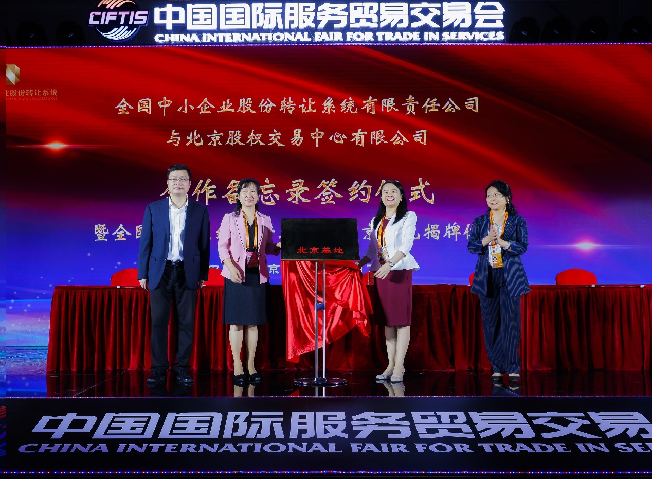 北京市地方金融監(jiān)督管理局黨組成員、副局長李妍,全國股轉(zhuǎn)公司黨委委員、副總經(jīng)理張梅見證了簽約儀式,并為基地揭牌。