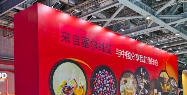 在1.1館入口處,塞爾維亞工商會(huì)展臺(tái)上“與中國分享我們最好的”幾個(gè)大字格外引人注目。
