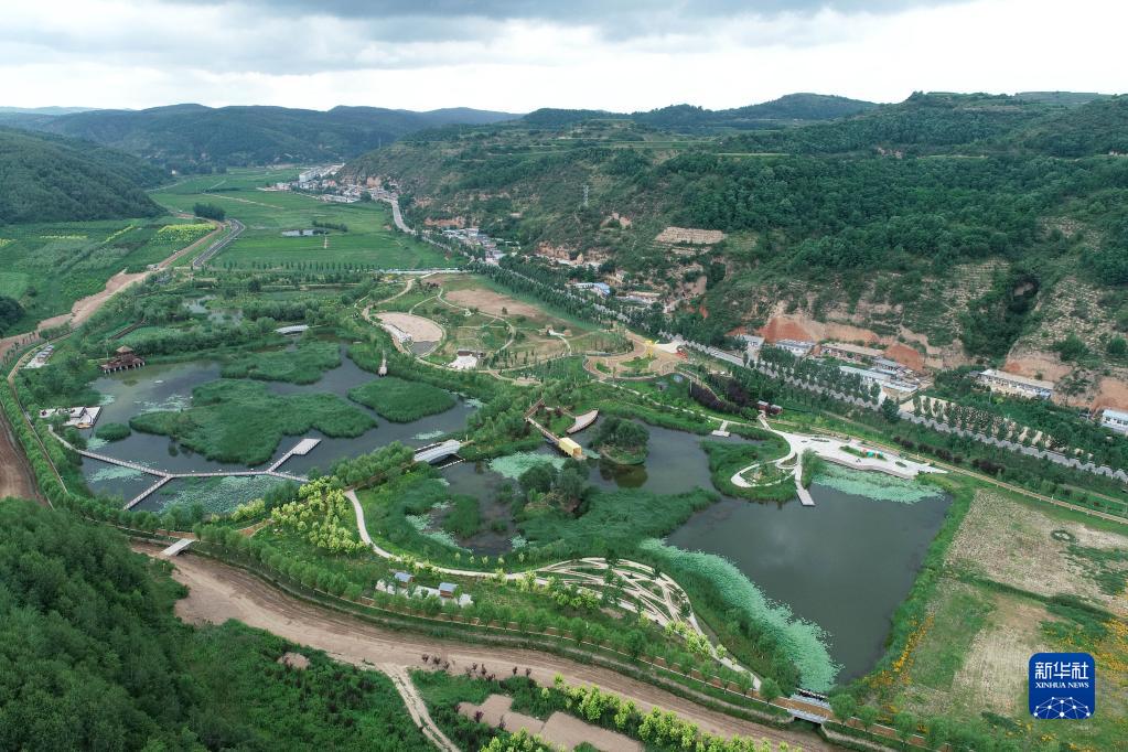 南泥灣國家濕地公園景色(7月22日攝,無人機照片)。新華社記者 張博文 攝