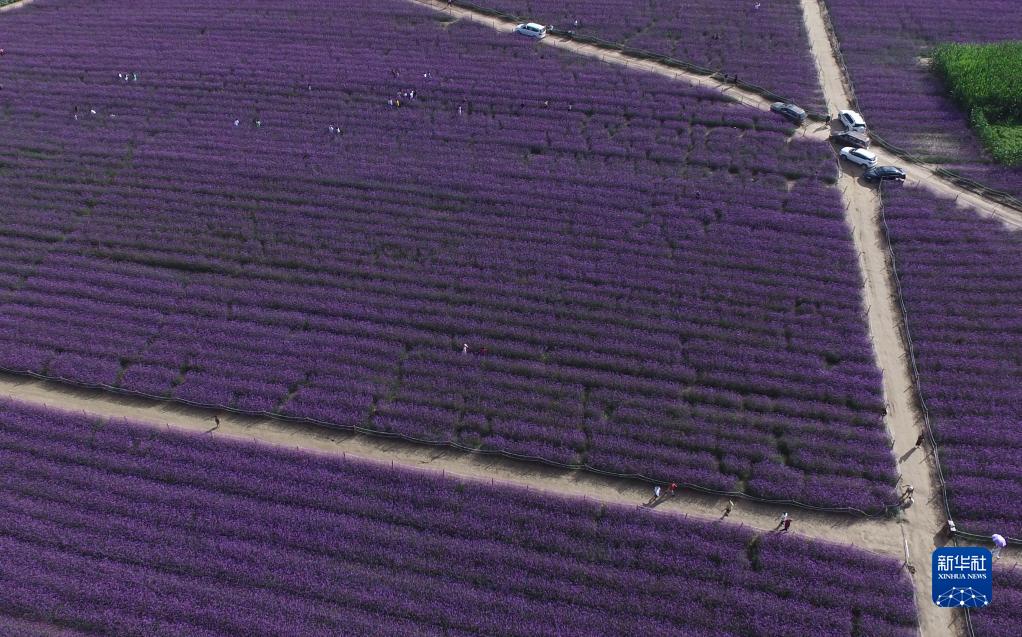 游人在延安南泥灣賞花游覽(2020年8月19日攝,無人機照片)。新華社發(fā)(祁小軍 攝)
