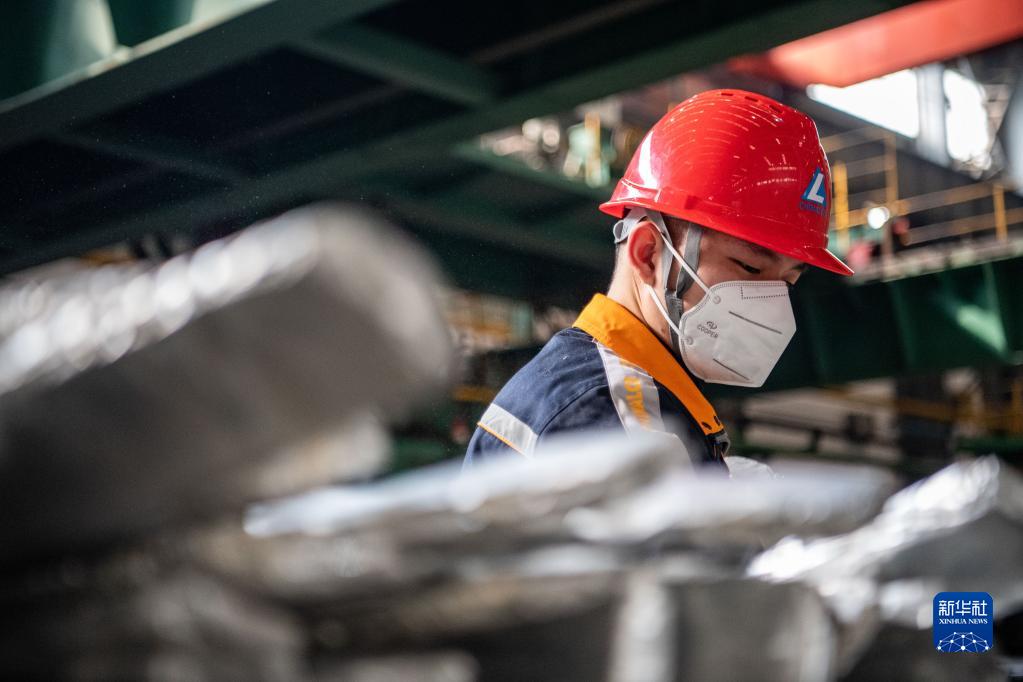 1月31日,在西南鋁業(yè)(集團)有限責(zé)任公司生產(chǎn)車間,工人在整理鋁材。新華社記者 唐奕 攝