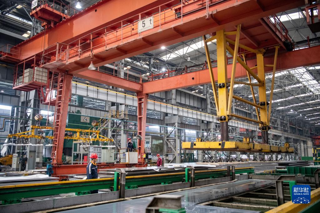 1月31日,在西南鋁業(yè)(集團)有限責(zé)任公司生產(chǎn)車間,工人觀察鋁材吊運情況。新華社記者 唐奕 攝