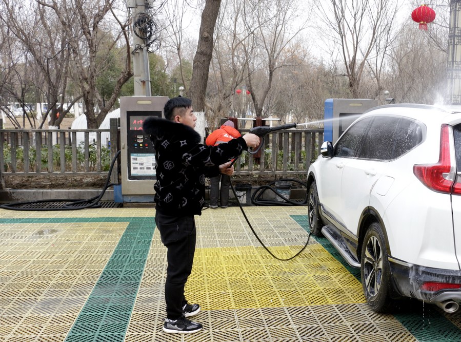 停車掃碼、拿起水槍、噴灑車身……位于安徽省宿州市迎賓公園的一處自助洗車站,市民陶輝熟練地操作著,很快便將私家車沖洗干凈。