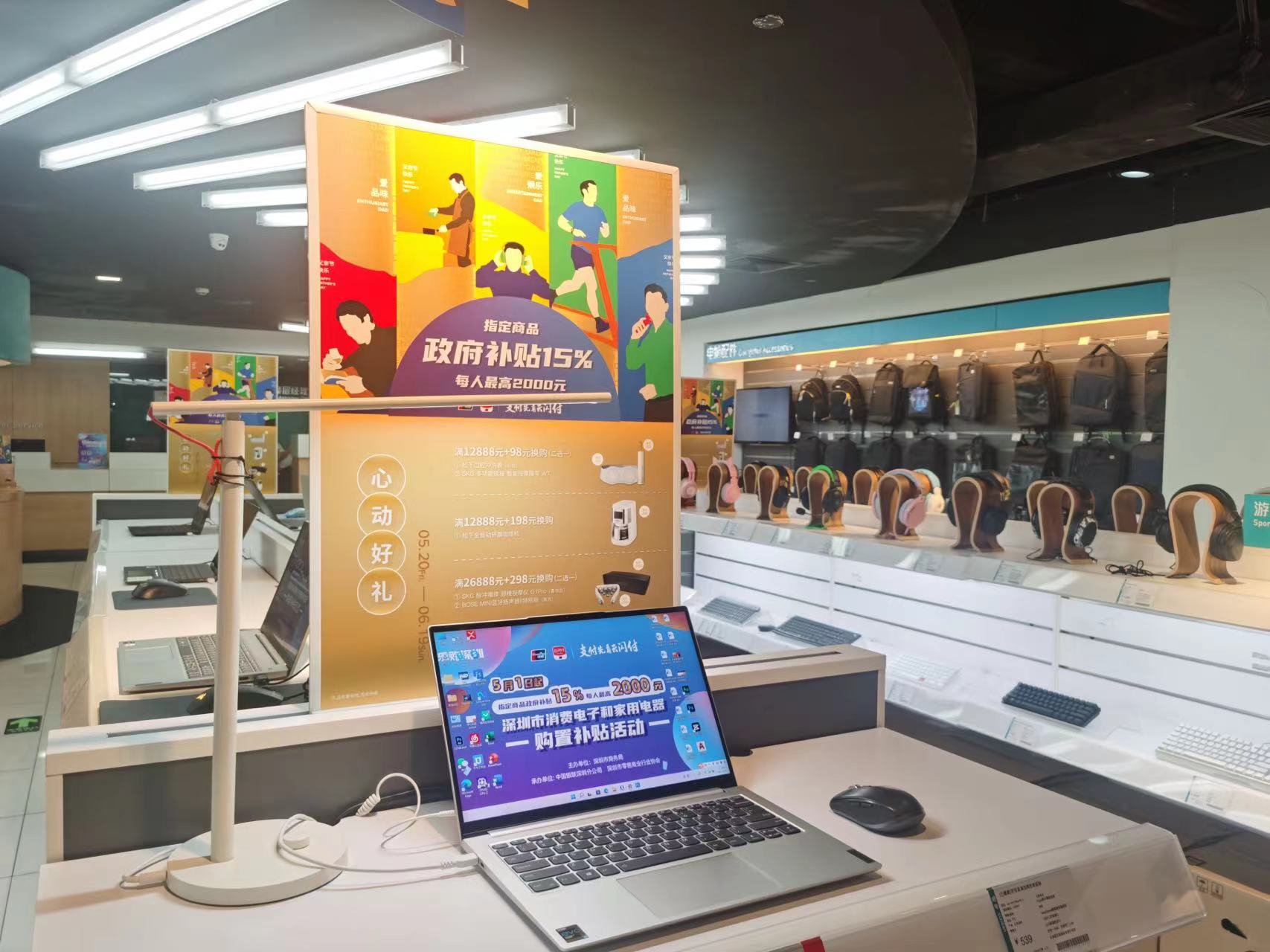 “補貼活動開始后,對很多消費者的吸引力還是很大的。”蘇寧易購華強北群星廣場店的工作人員介紹,深圳此輪促消費措施中,家電和電子產(chǎn)品是最早落地的!皬5月1日起就開始了,消費者可以在疊加其他優(yōu)惠活動的基礎上再享受15%的政府補貼,相當于又打了一個八五折!