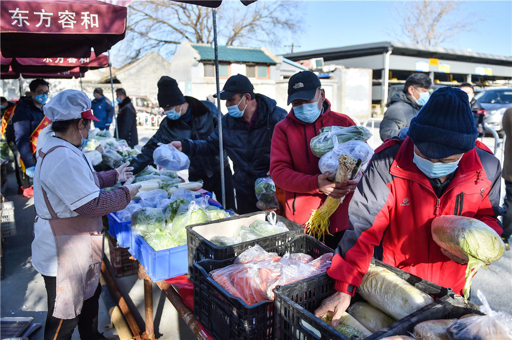 北京前門(mén)平房區(qū)居民在選購(gòu)蔬菜(2020年3月13日攝)。新華社記者 彭子洋 攝