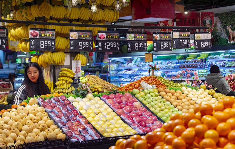 1月12日,顧客在貴州省從江縣一家超市選購水果。 新華社圖片