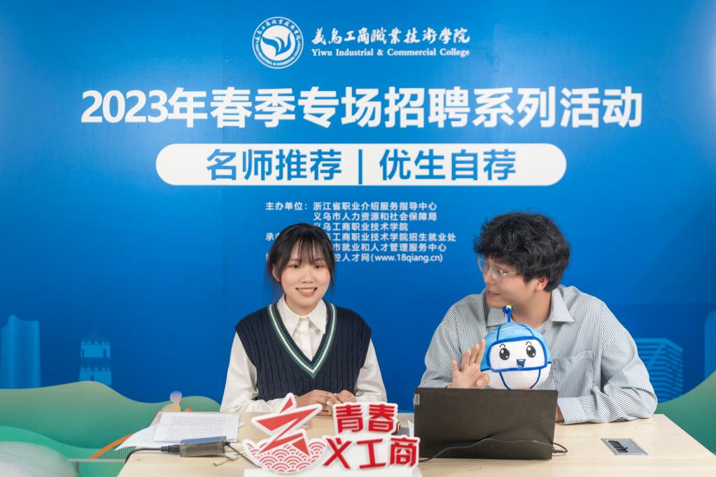 3月和4月是青年學生求職高峰期。近日,義烏工商職業(yè)技術(shù)學院創(chuàng)業(yè)學院電商企業(yè)專場招聘會現(xiàn)場,開展了“名師推薦”和“優(yōu)生自薦”直播活動,開拓出助推大學生就業(yè)的新渠道。