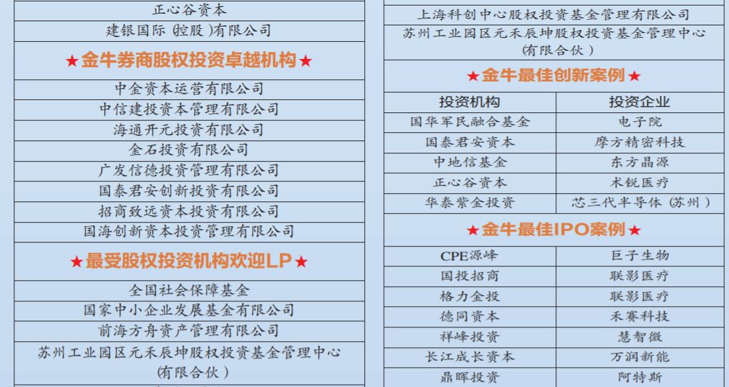 第七屆股權(quán)投資金牛獎榜單揭曉