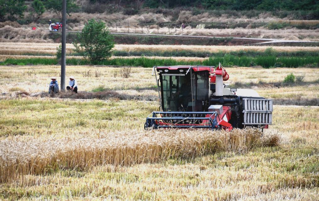 四川省德陽市中江縣是四川的傳統(tǒng)糧食生產(chǎn)大縣。在該縣永太鎮(zhèn)石獅村,一臺(tái)臺(tái)收割機(jī)在金黃的麥浪中來回穿梭,搶抓農(nóng)時(shí)收麥子。