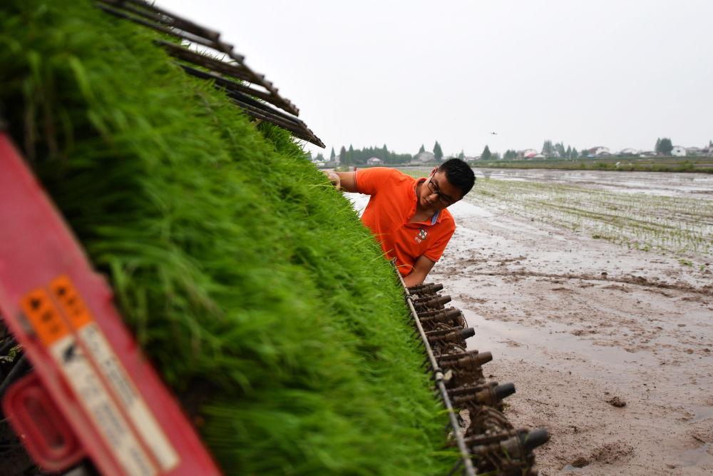 湖南省益陽市大通湖區(qū)宏碩生態(tài)農(nóng)業(yè)農(nóng)機(jī)合作社工作人員在整理秧苗。新華社記者 陳振海 攝