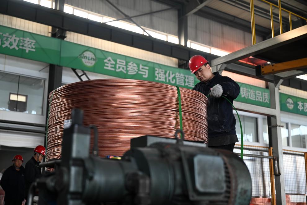 ??工人在天津新能再生資源有限公司銅桿車間工作。新華社記者 趙子碩 攝