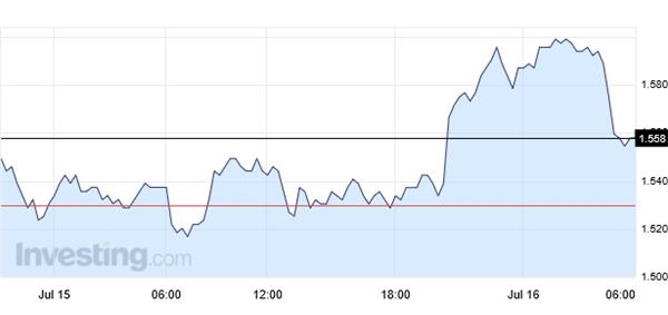 政變發(fā)生前,本周全球國(guó)債市場(chǎng)的牛市行情暫歇,紐約尾盤交易中,基準(zhǔn)10年期美國(guó)國(guó)債收益率收益率創(chuàng)下自2015年6月以來(lái)最大單周漲幅,報(bào)1.594%。30年期國(guó)債收益率從上周收盤的2.109%升至2.302%。德國(guó)、法國(guó)、瑞士、瑞典和日本國(guó)債收益率也走高。但隨后受土耳其政變影響,美國(guó)10年期美債收益率快速回吐了5個(gè)基點(diǎn)至1.55%附近。