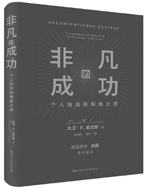 “世界上只有兩位真正偉大的投資者,他們是史文森和巴菲特”,這是《機(jī)構(gòu)投資者的創(chuàng)新之路》的推薦人摩根士丹利前董事長巴頓·比格斯的原話。在《機(jī)構(gòu)投資者的創(chuàng)新之路》出版之后,一些新的研究成果發(fā)現(xiàn)促使史文森“想寫一本不一樣的書”,結(jié)合對個(gè)人投資資源與工具局限性的認(rèn)知,書的英文名為《Unconventional Success》。相比非同凡響的投資成功,人們往往會(huì)覺得傳統(tǒng)型的失敗更好受一些。往往是那些走與眾不同之路的人才能取得投資成功。