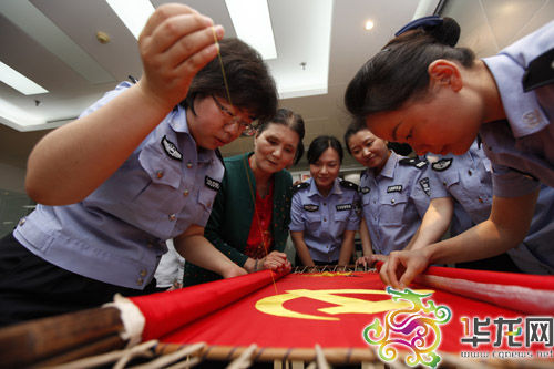 重慶7名女警5.7萬針繡黨旗獻(xiàn)禮十八大(圖)