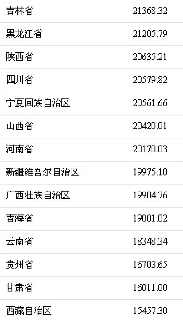 ↑2017年各地居民人均可支配收入。來源:國家統(tǒng)計局網(wǎng)站
