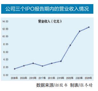 根據(jù)招股書,2010年公司營業(yè)收入就已突破3億元,但在隨后的近十年里,業(yè)績?cè)鲩L卻顯得較為緩慢,又在短短兩年(2020年、2021年)之后,公司營業(yè)收入?yún)s取得了突飛猛進(jìn)的增長。與2019年相比,2022年至2024年的營業(yè)收入增長幅度分別高達(dá)114.54%、214.93%和243.47%。